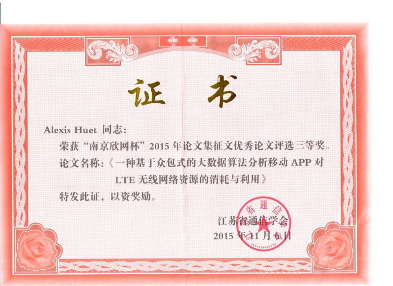 會議期間,評選出了以“互聯網+”為題材的優秀科技論文,于此,華蘇科技 大數據產品部高級算法工程 師憑借其獨到的觀點和優越的技術實力在“互聯網+”比賽中榮獲論文三等獎,題名為“一種基于眾包式的大數據算法分析移動APP對LTE無線網絡資源的消耗與利用”。