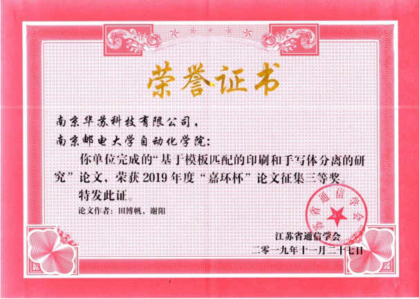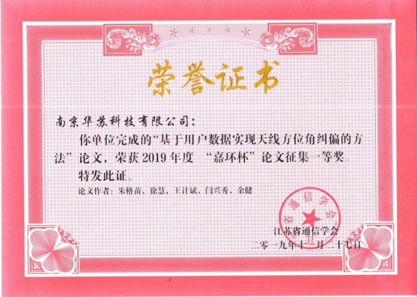 華蘇科技榮獲2019年度江蘇省通信學(xué)會(huì)論文征集一等獎(jiǎng)、三等獎(jiǎng)