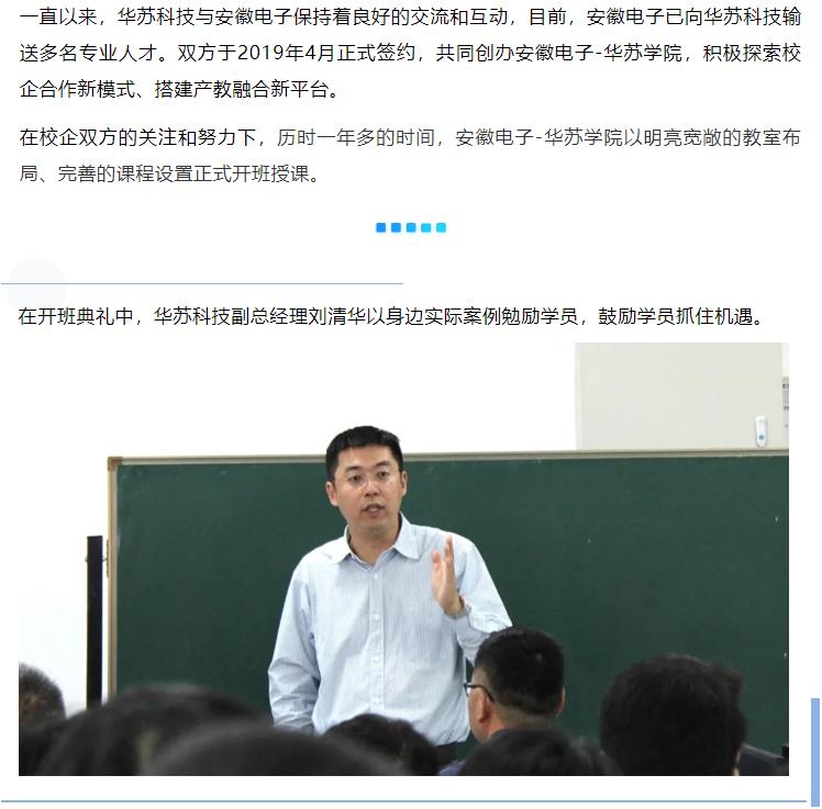 10月9日,安徽電子-華蘇學院正式開班。安徽電子信息職業(yè)技術(shù)學院(以下簡稱“安徽電子”)副院長姚卿佐,