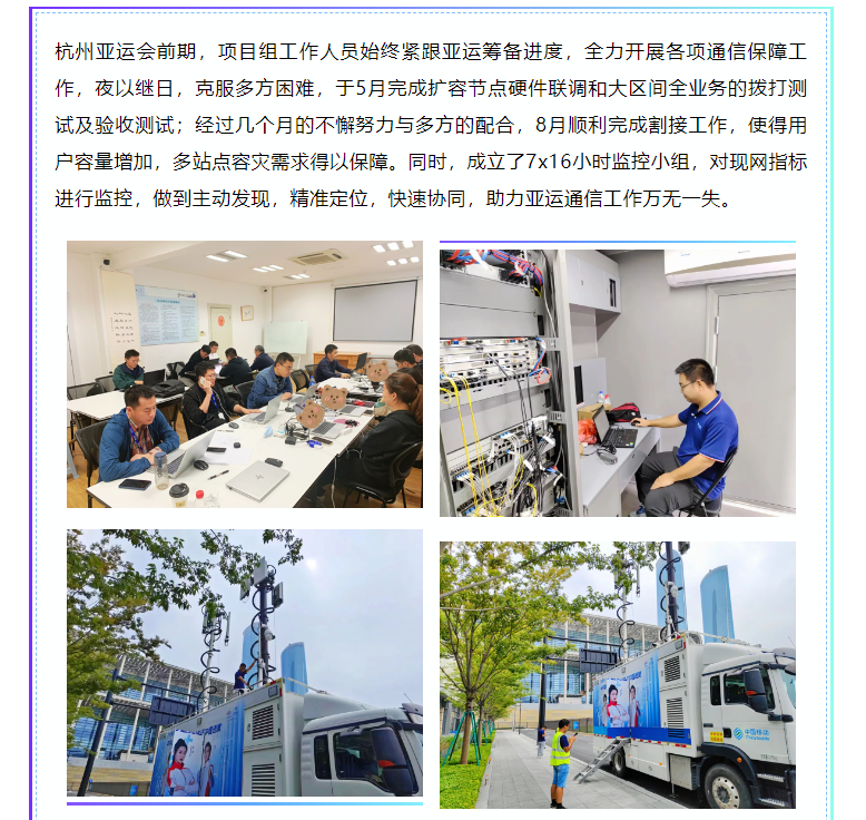 共同參與這場國際級的體育盛事。為保障此次亞運會圓滿舉辦,確保開幕式、各項賽事活動等通信網絡暢通,