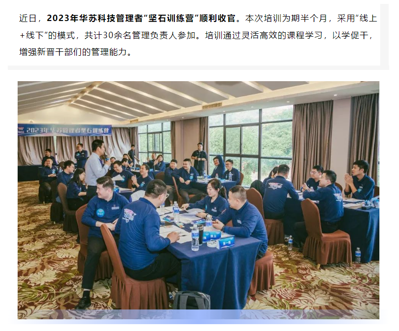 近日,2023年華蘇科技 管理者“堅(jiān)石訓(xùn)練營”順利收官。本次培訓(xùn)為期半個(gè)月,采用“線上+線下”的模式,