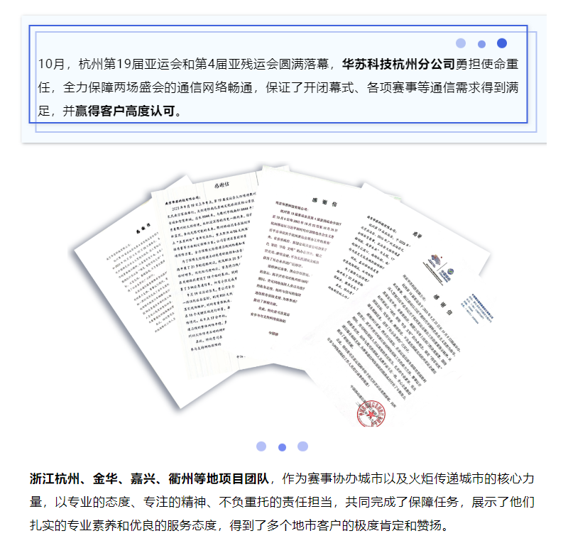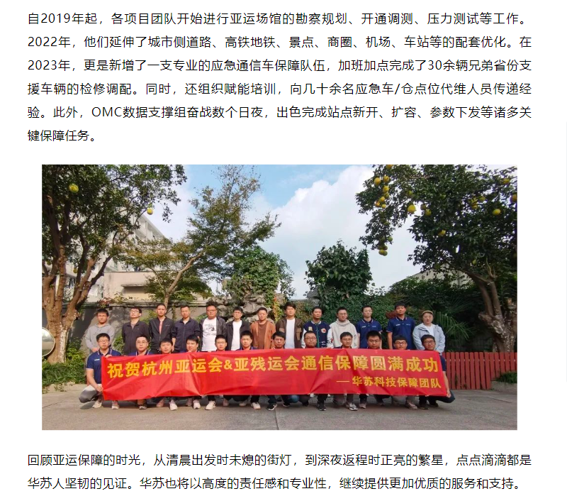 10月,杭州第19屆亞運會和第4屆亞殘運會圓滿落幕,華蘇科技 杭州分公司勇?lián)姑厝危?/span>