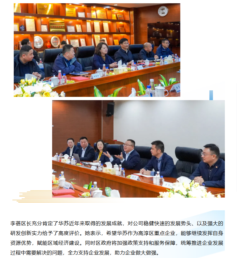 高淳區(qū)委副書記、區(qū)長李蓓一行蒞臨華蘇科技走訪調(diào)研