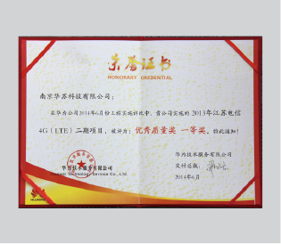 - 2014年江蘇電信4G(LTE)二期項目“優秀質量獎 一等獎”