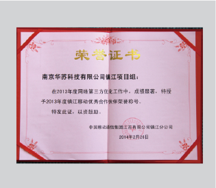 - 2013江蘇鎮江移動優秀合作伙伴榮譽 稱號