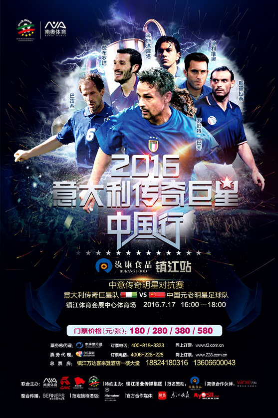 近日,“2016意大利傳奇巨星中國(guó)行”于江蘇鎮(zhèn)江正式開(kāi)啟行程。羅伯特·巴喬、弗朗哥·巴雷西、保羅·羅西、薩爾瓦托雷·斯基拉奇等20多位意大利傳奇巨星親臨現(xiàn)場(chǎng)。中國(guó)元老明星足球隊(duì)的范志毅、馬明宇、黎兵、彭偉國(guó)等昔日國(guó)足主力也來(lái)到現(xiàn)場(chǎng),喚起了現(xiàn)場(chǎng)球迷對(duì)這經(jīng)典一代的回憶。一場(chǎng)來(lái)自中意明星球員腳下的爭(zhēng)奪戰(zhàn)一觸即發(fā)!